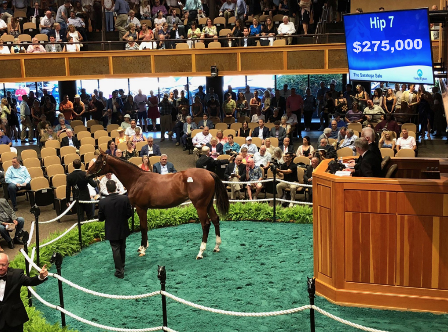 August 7, 2018 – A pair of Shannondoe Farm bred yearlings proved very popular with buyers at the prestigious Fasig-Tipton Saratoga Selected Yearling sale, commanding final bids of $275,000 and $225,000, respectively. Both colts were consigned by South Point Sales.