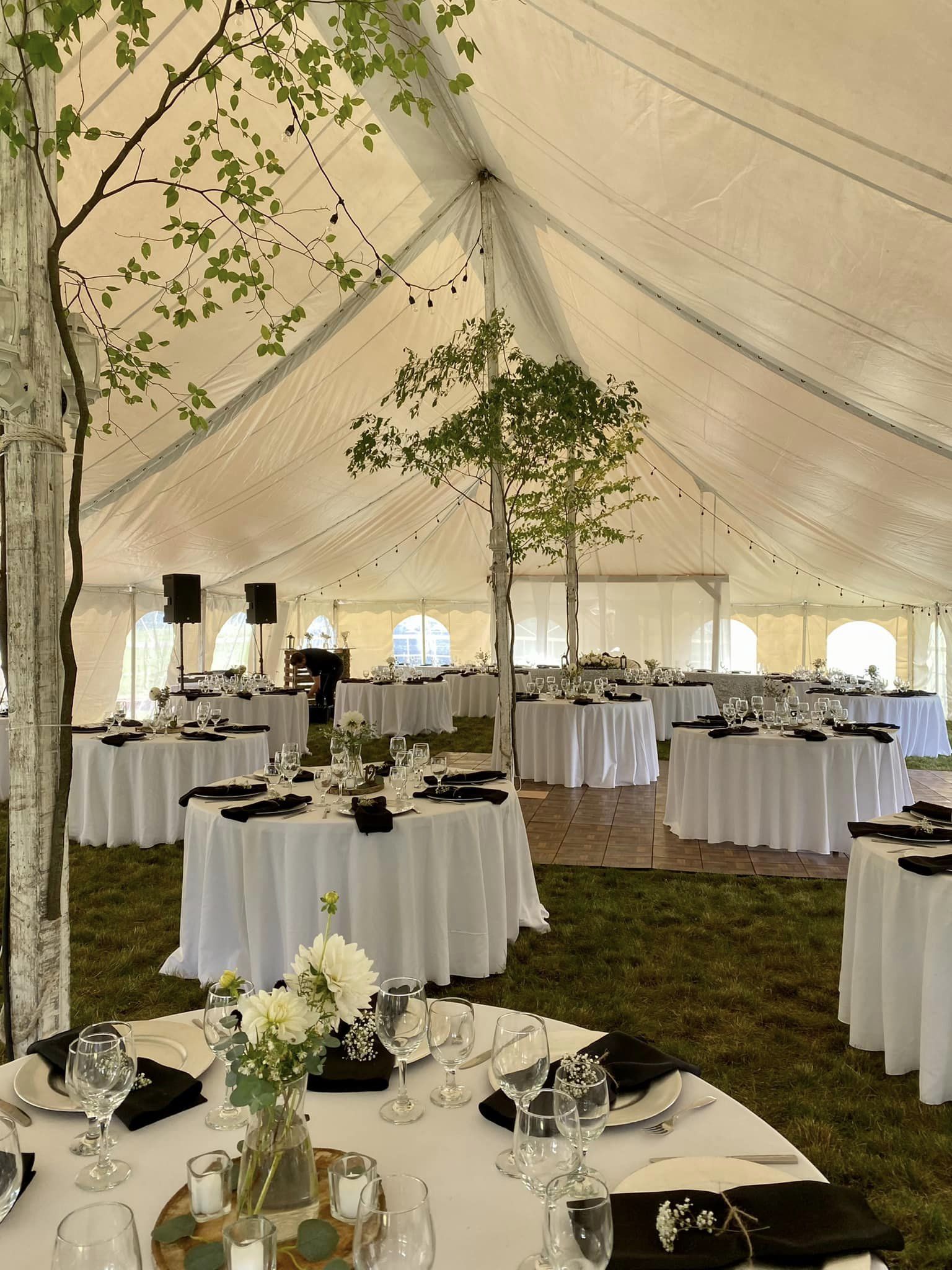 We can accommodate a small ceremony or a full 250-300 guest wedding with a tent reception.